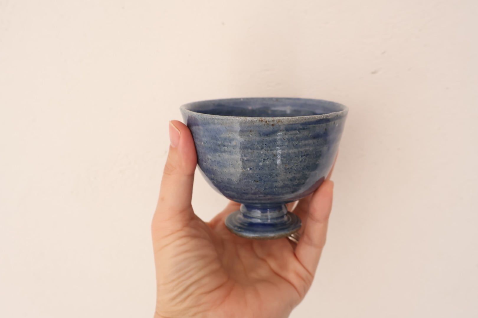 優しいブルーがホワイトとマーブル状に色づき艶々な表情が可愛さを増す.飲み物やアイスクリーム、フルーツなど、小鉢として…様々な使用で楽しめる器です.