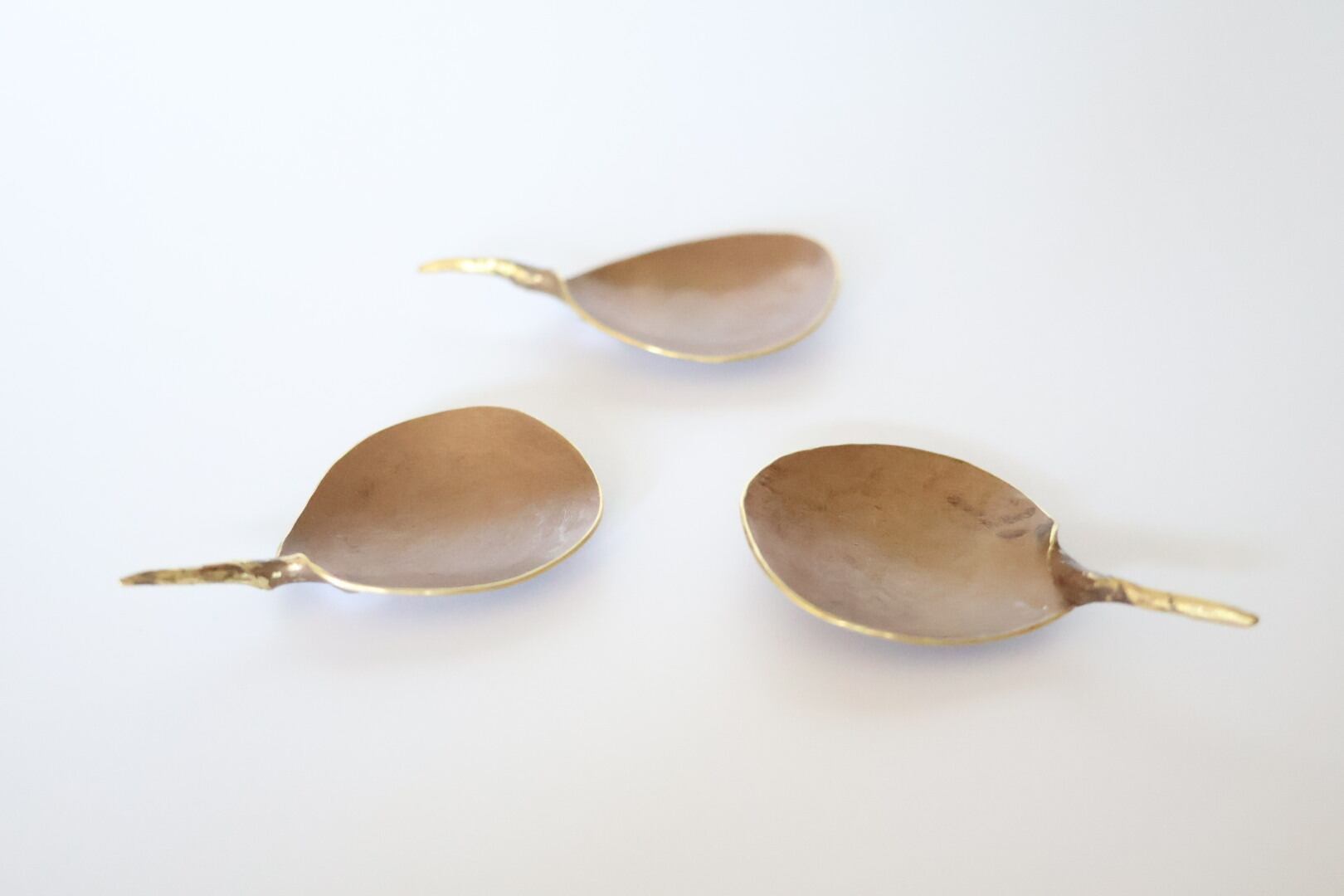 ▶︎金属を火で焼きなます工程で発生する、酸化被膜の色を残した作品です。ご使用に伴い起こる経年変化をお楽しみ下さい。食器用洗剤とスポンジで洗浄し乾かして下さい。自然乾燥で問題ないですが、変化を抑えたい場合は布巾などで拭いて下さい。