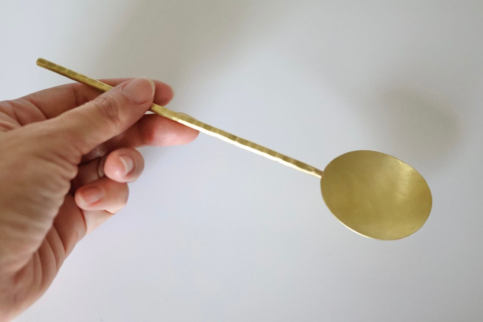 ◯柄の細さの持ちやすさと口に入る部分の程良い重さが使いやすさを感じるスッカラ風スプーンです。