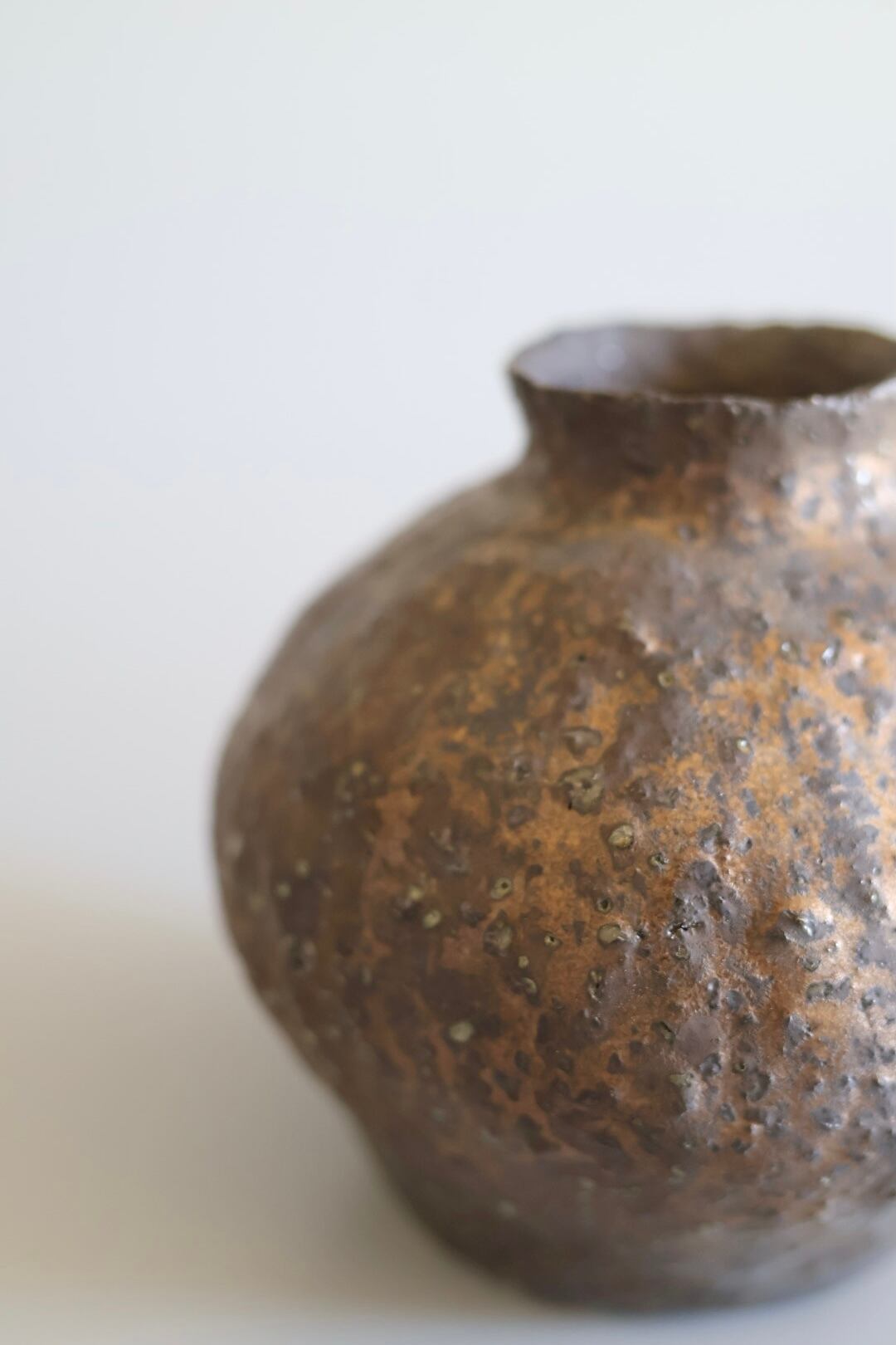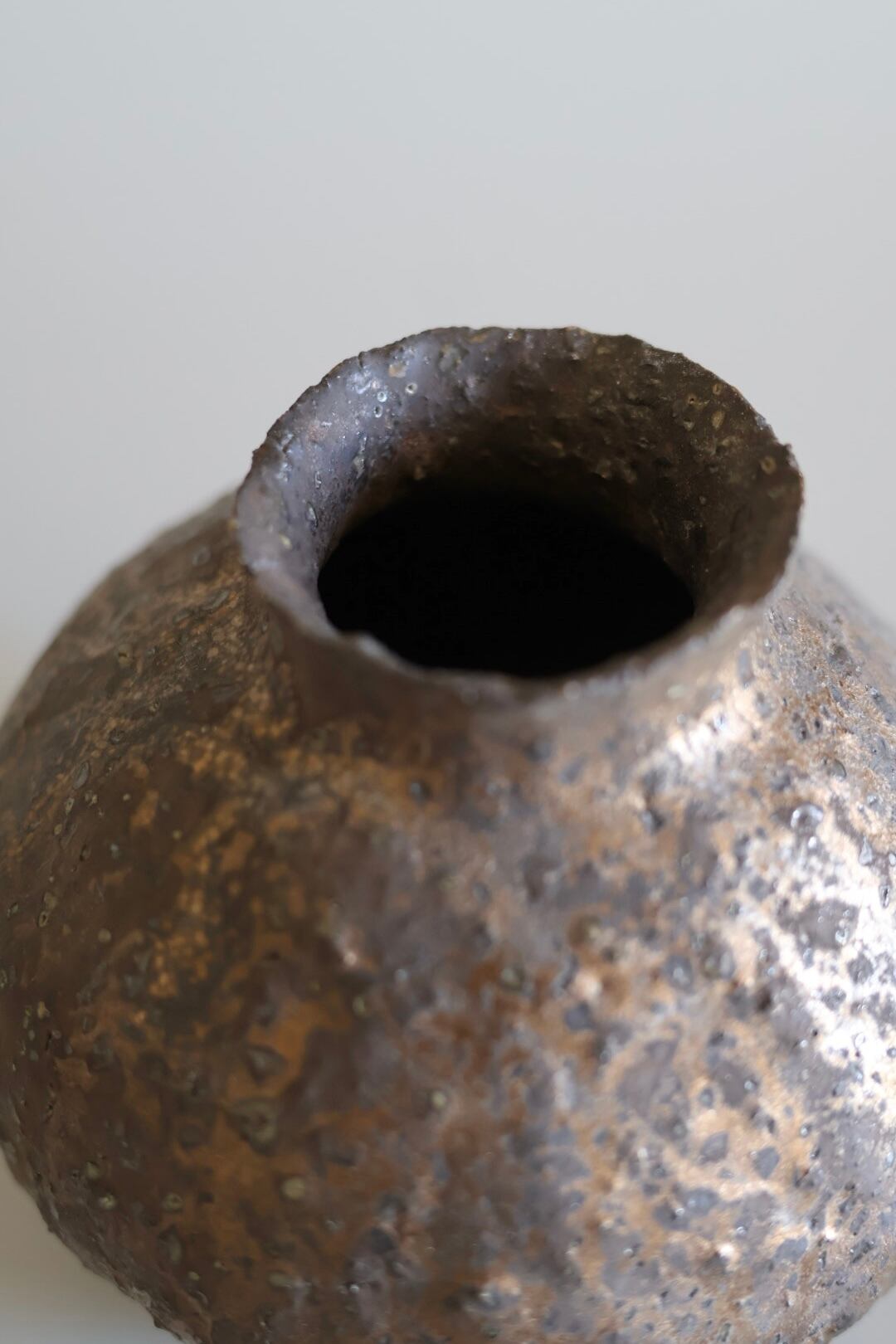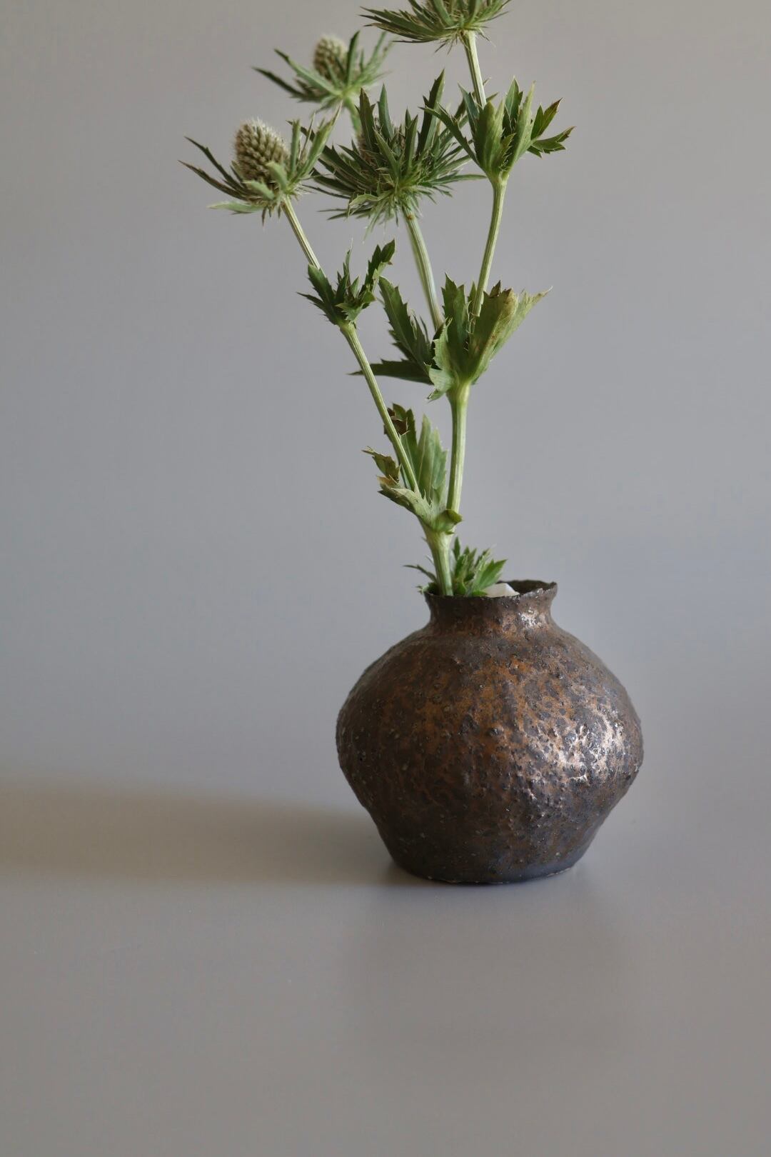 表面はざらっと金属が錆びた風合いが印象的で生花でもドライでも相性がいい作品です.