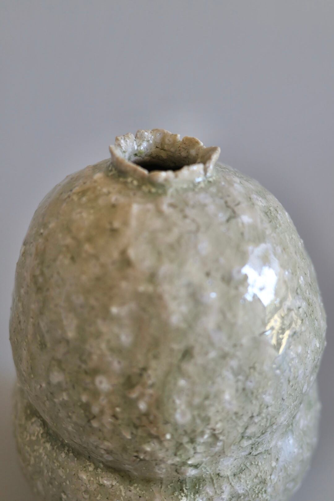 手捻りで作られたやわらかなカタチが印象的な花器です.口が狭いのでお花が生けやすく雰囲気が出ます.