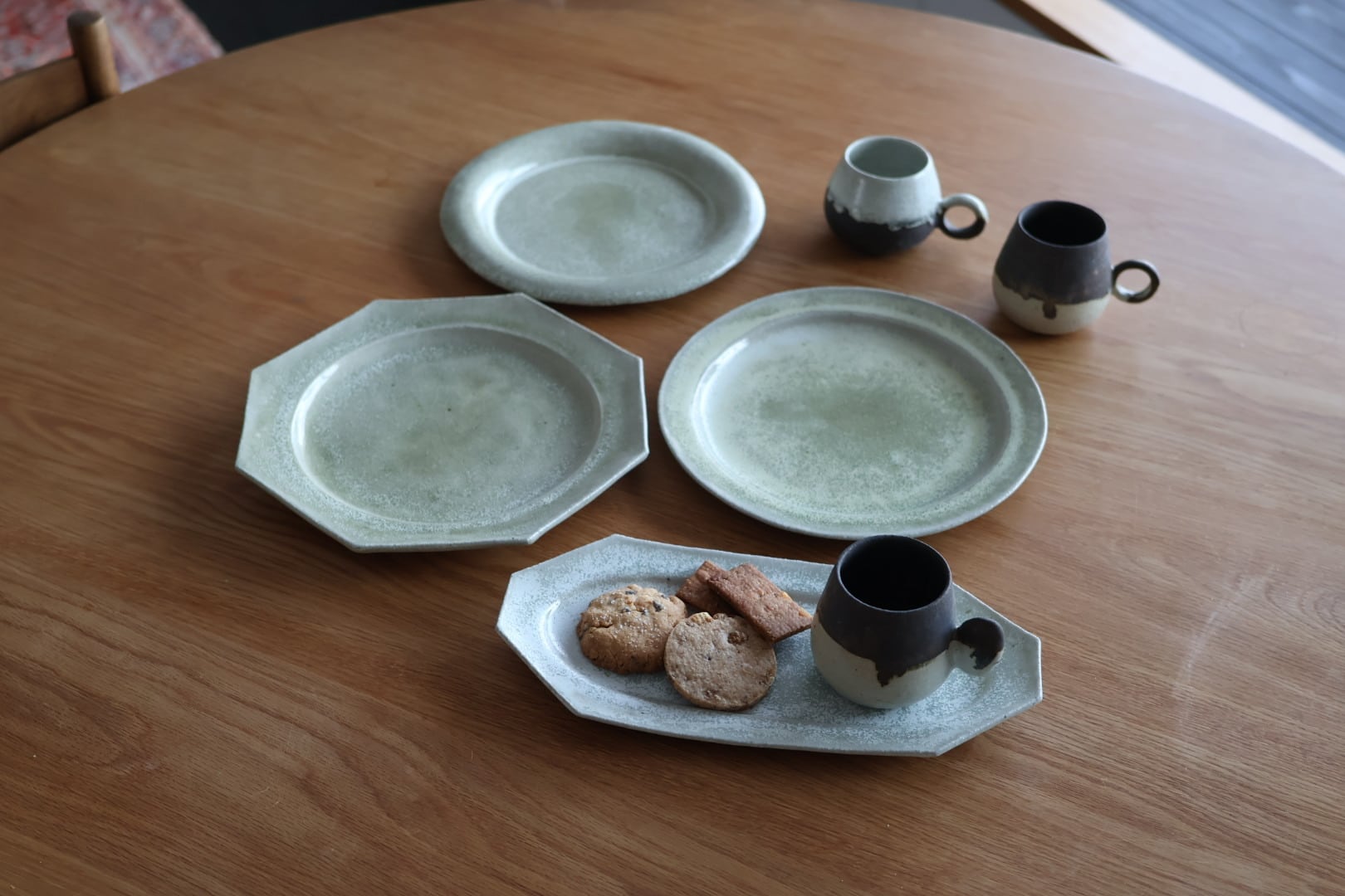 信楽の地で生活に寄り添う器を作られている藤原さんの作品です.黒・白・錆色・そして新色の緑かかった白…落ち着きのあるひとつひとつ.シンプルなその中に特別感がある. 乗せたものを引き立たせてくれる気の利いた器たちをどうぞお楽しみくださいませ.
