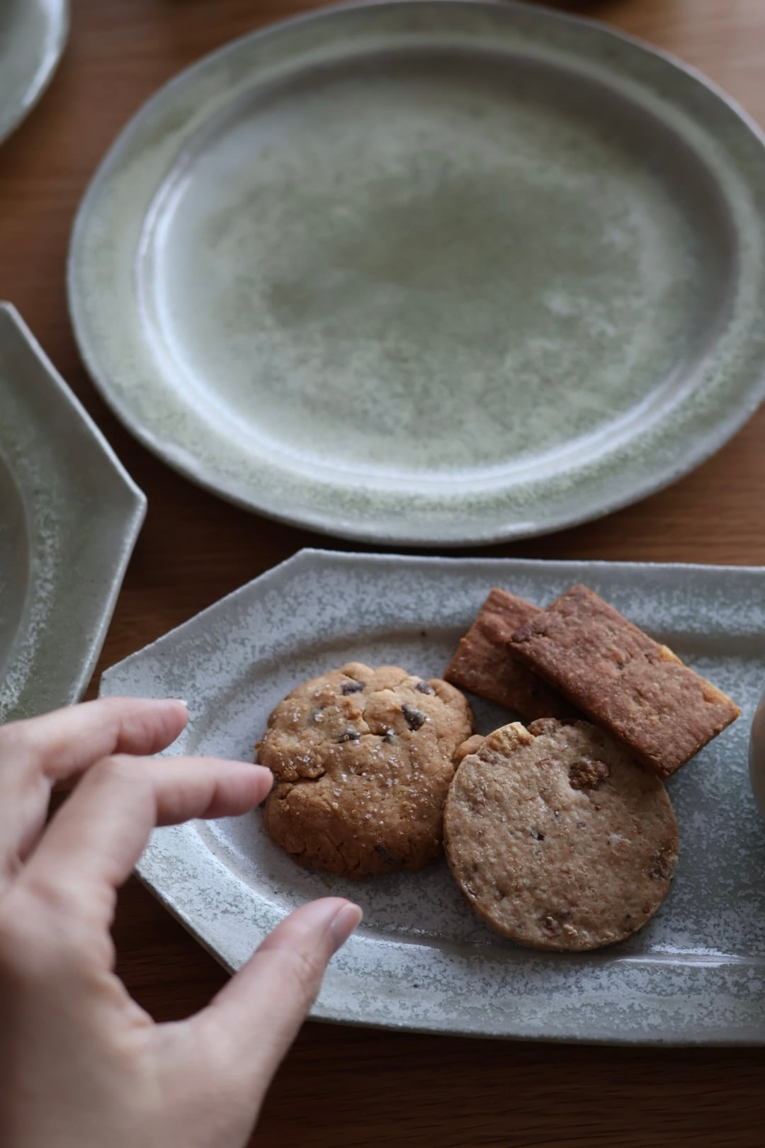 ロングプレートは使い方が様々でき、食卓に並べた時にも雰囲気が出ます.3種ほどの前菜などをちょこんちょこんと置いたり、お魚、マグカップを置いて空いたスペースにお気に入りのお菓子を乗せて♡