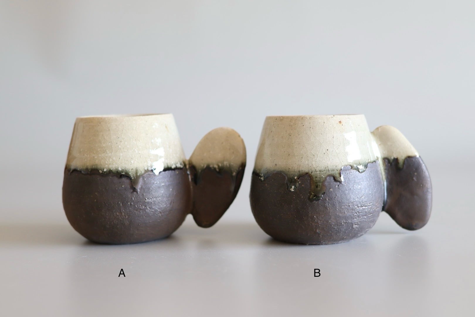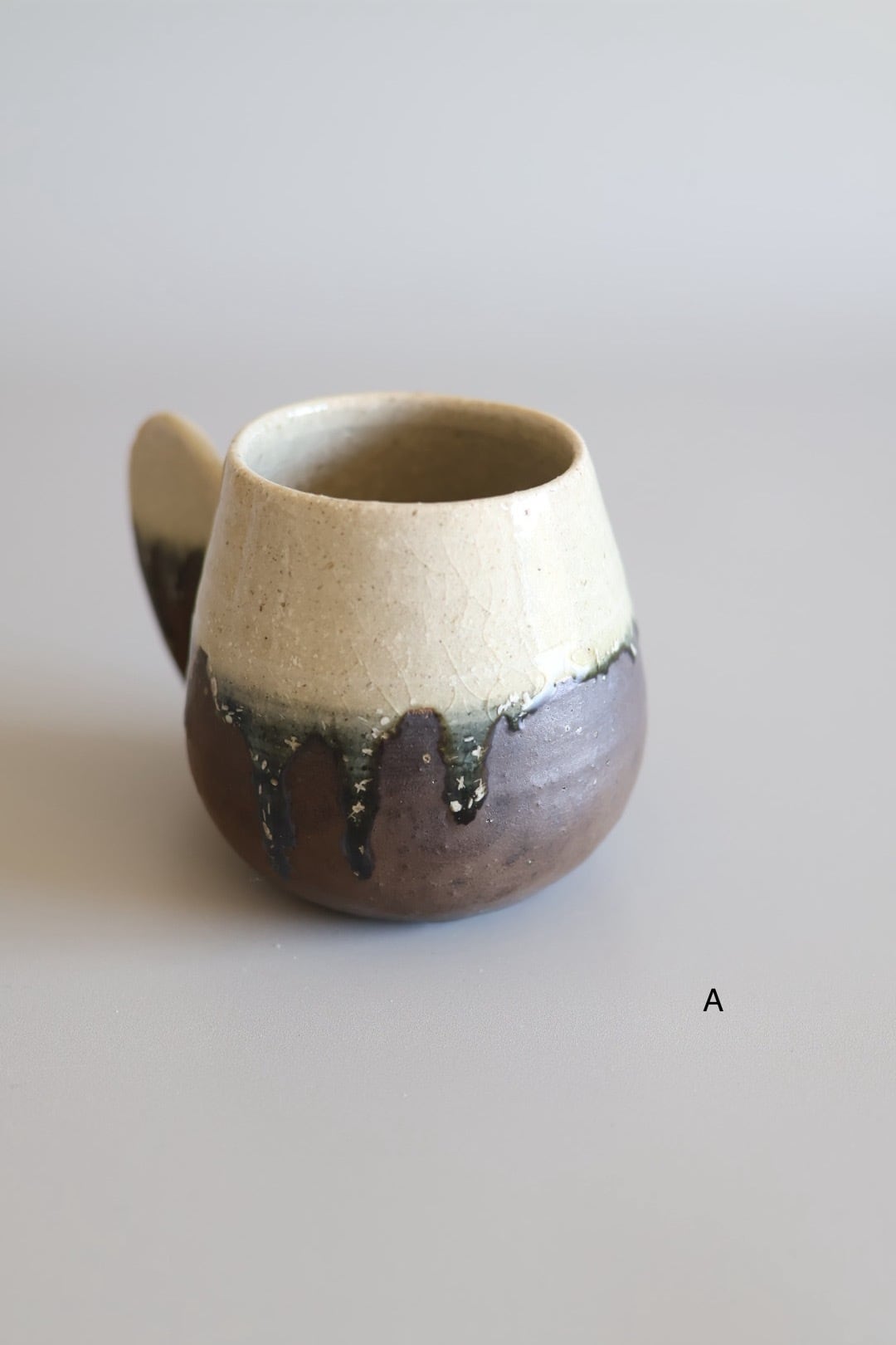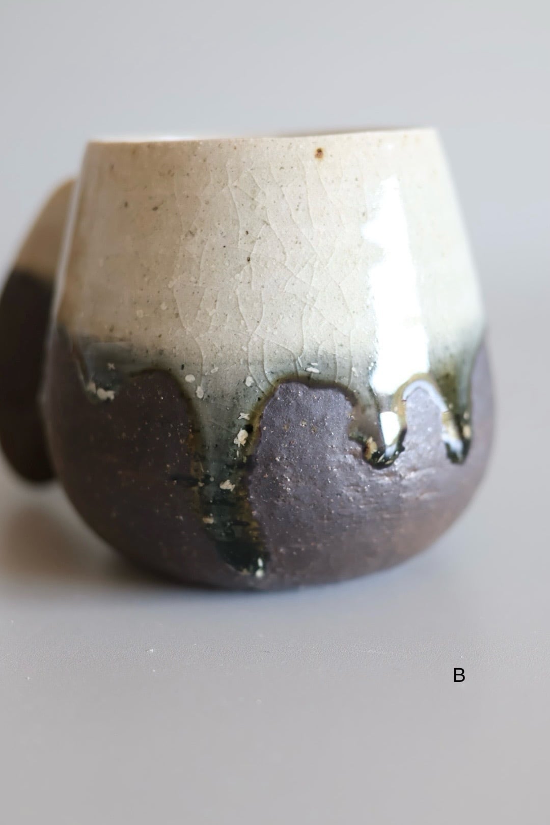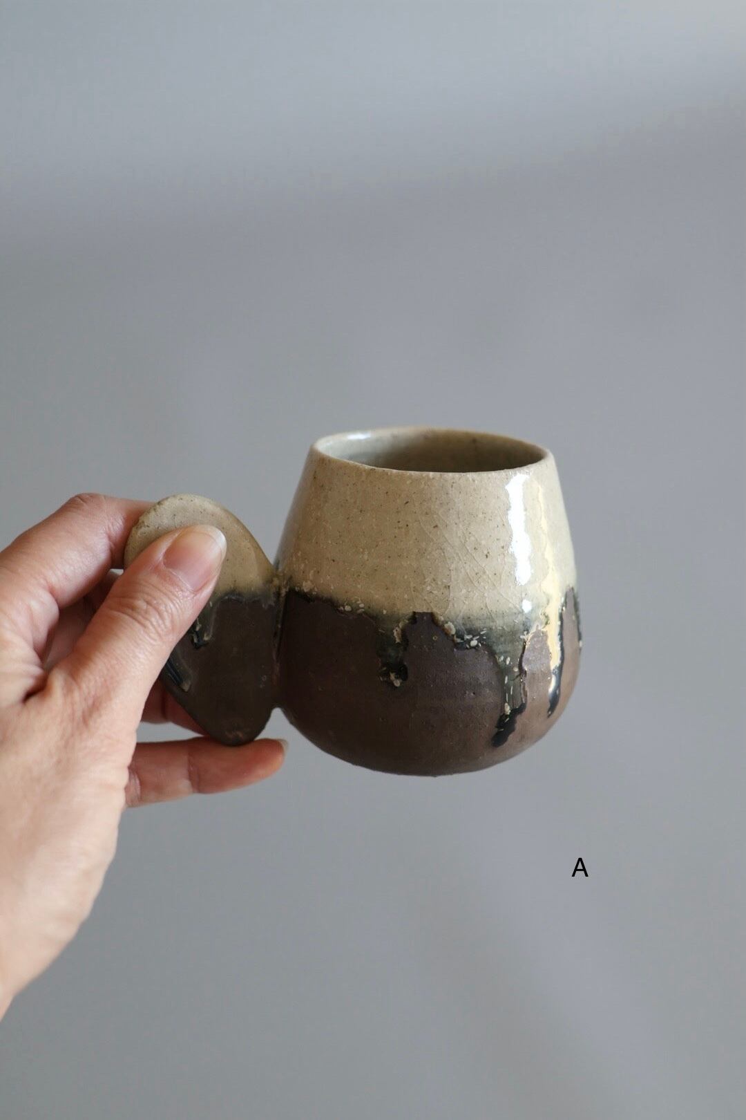フォルムも持ち手も可愛らしいマグカップ.寒くなってきてホットドリンクが日常のホット一息につながる季節.落ち着いた色味で釉薬の垂れ具合も微妙に違うのでごゆっくりお選びください♡