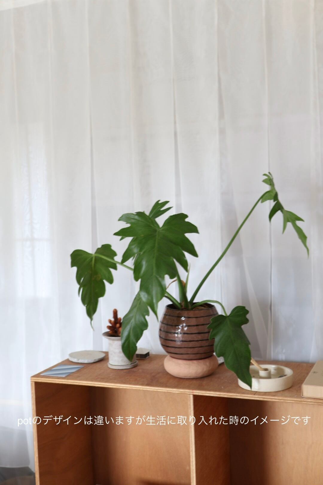 ボーダーの模様が可愛らしさいplantpot♡受けとセットという佐和さんのデザインは唯一無二です.わさわさと葉っぱのたくさんある植物が合いそうです!ぜひ、暮らしの中に植物を取り入れてみてはいかがでしょうか?