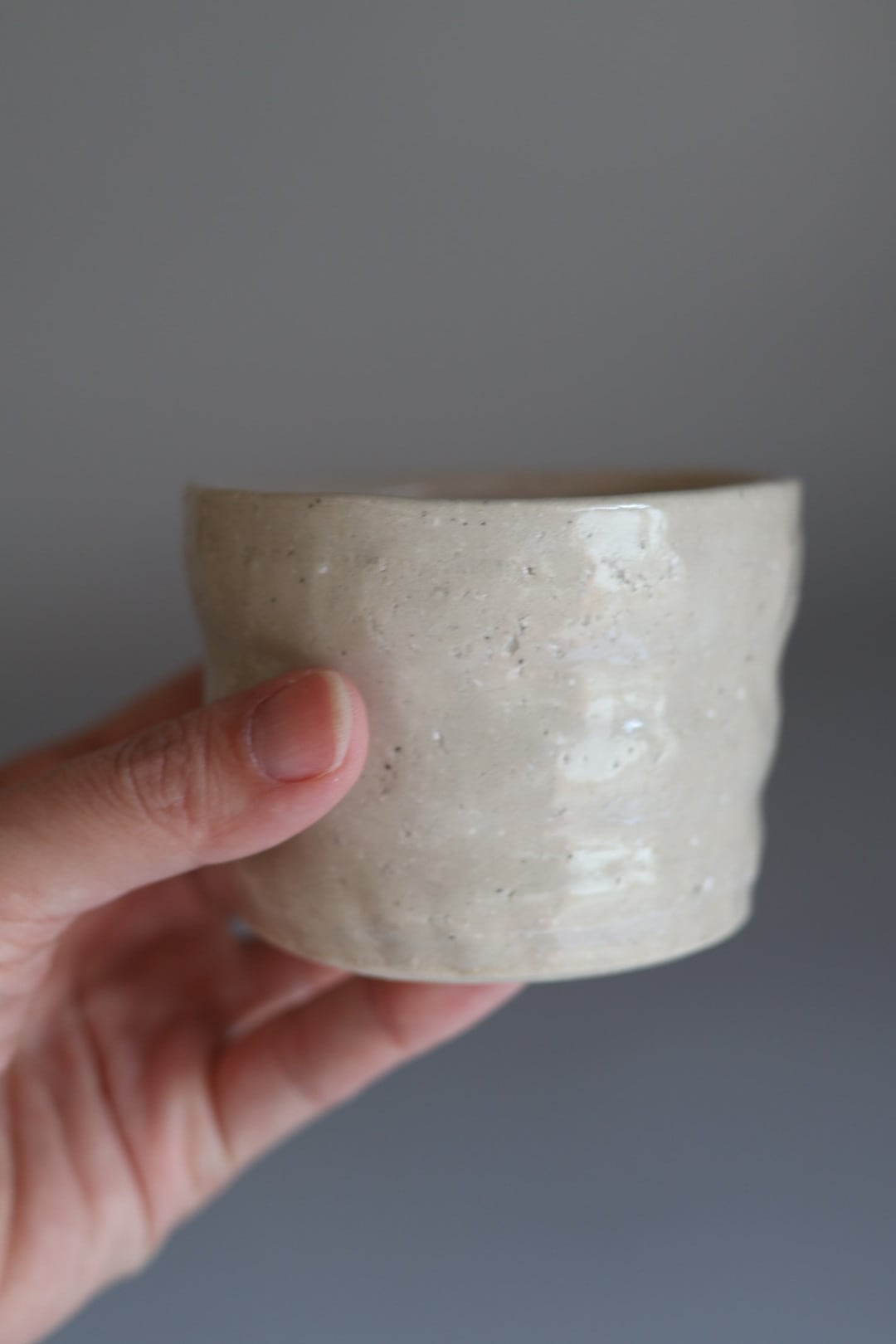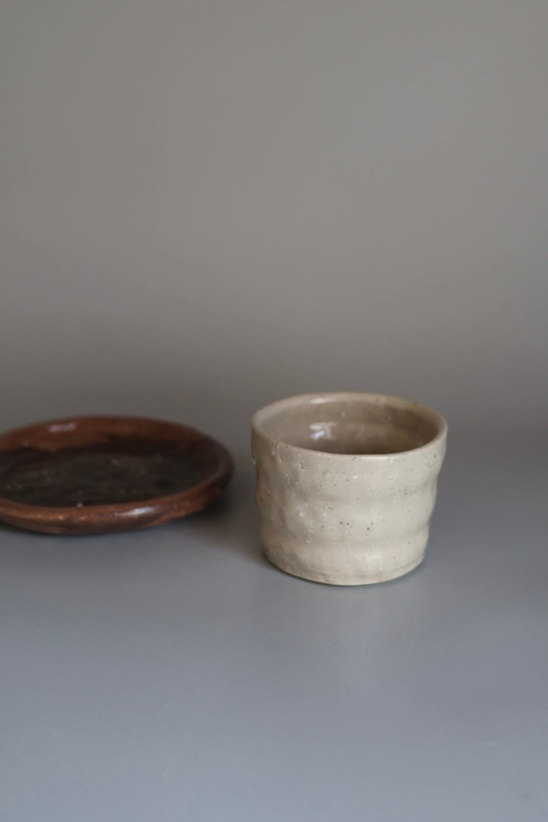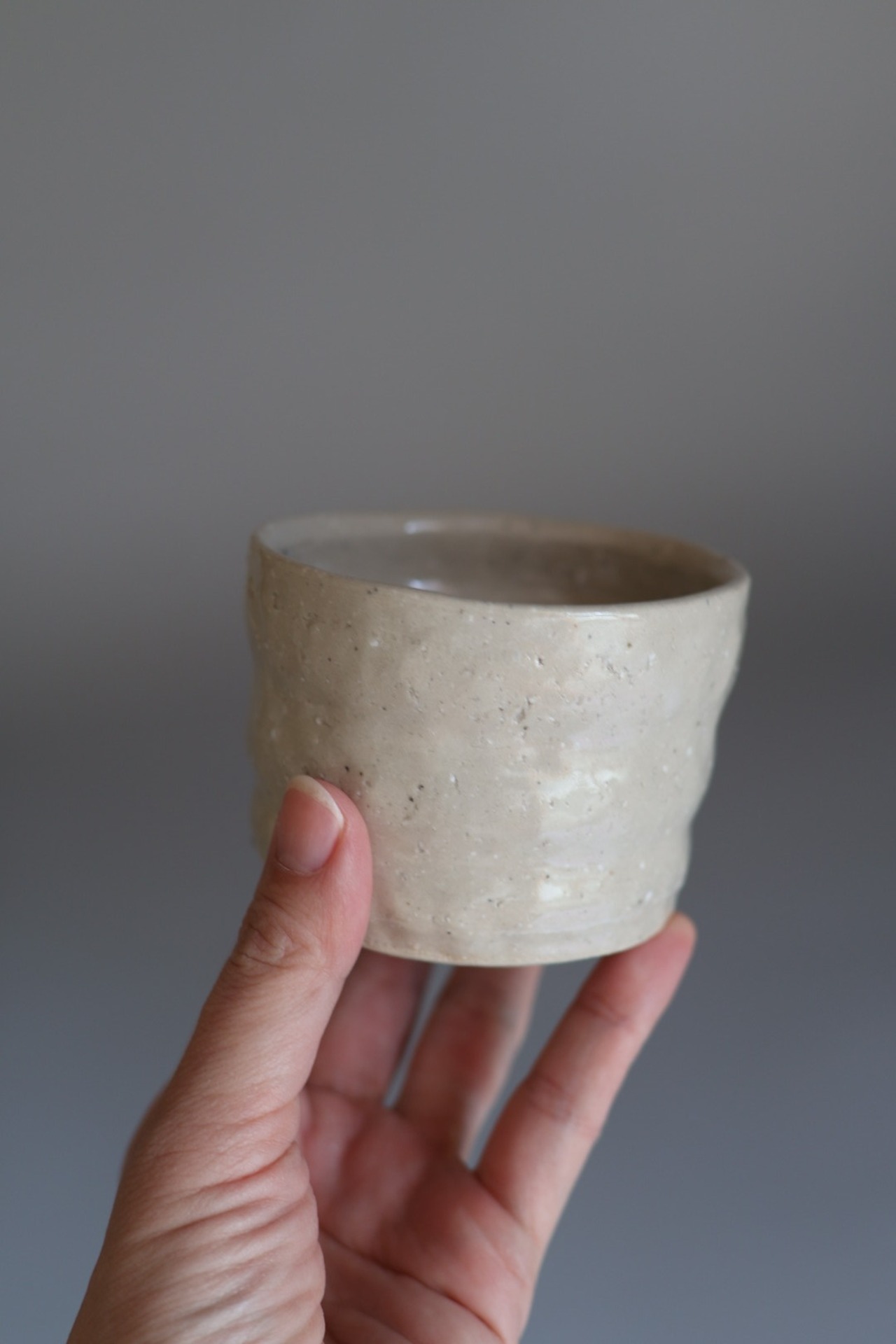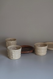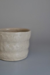 アイボリー寄りのベージュとでもいえば良いのだろうか?とっても心地の良い色味で手持ちの器との相性も良いfree cupです.優しくモコモコってしているデザインで、持った時には指がピタッとフィットします. 飲み物入れたり、お蕎麦や素麺などそば猪口のように使っても◯ヨーグルトもいいですねぇ.ワンプレートの仕切りにも◯