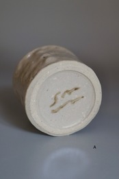 A:器のサイドに縦に3つのポコポコともう片側には3つのポコポコの凹みが施されているデザイン.