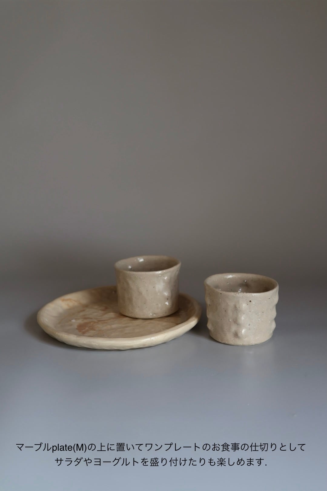 アイボリー寄りのベージュとでもいえば良いのだろうか?とっても心地の良い色味で手持ちの器との相性も良いfree cupです.飲み物入れたり、お蕎麦や素麺などそば猪口のように使っても◯ヨーグルトもいいですねぇ.