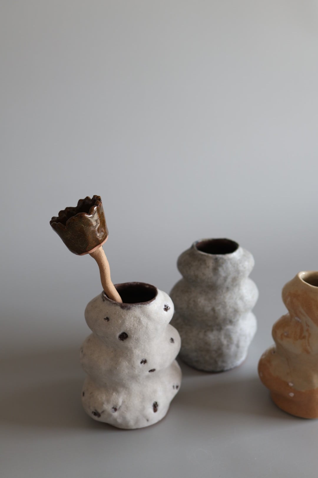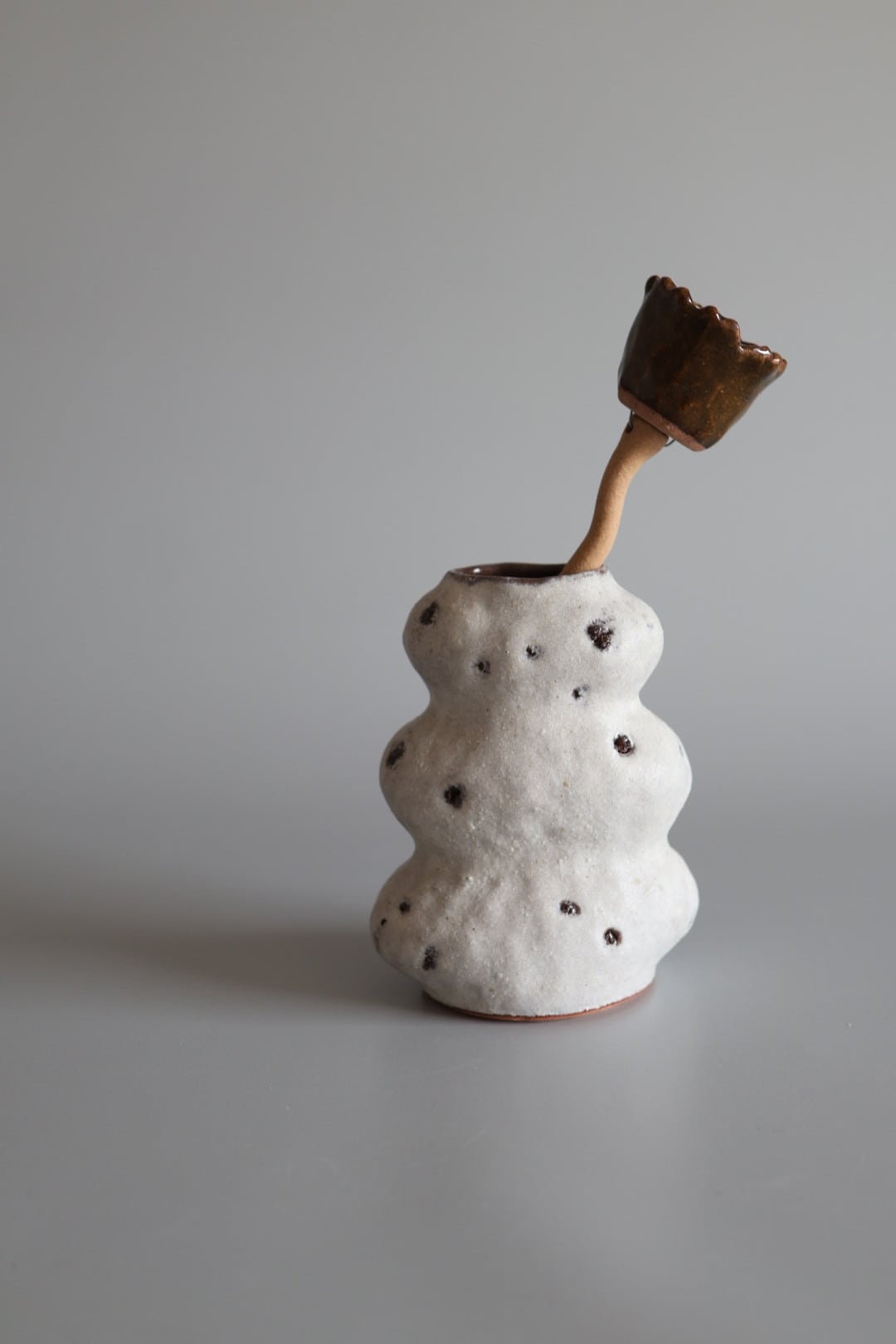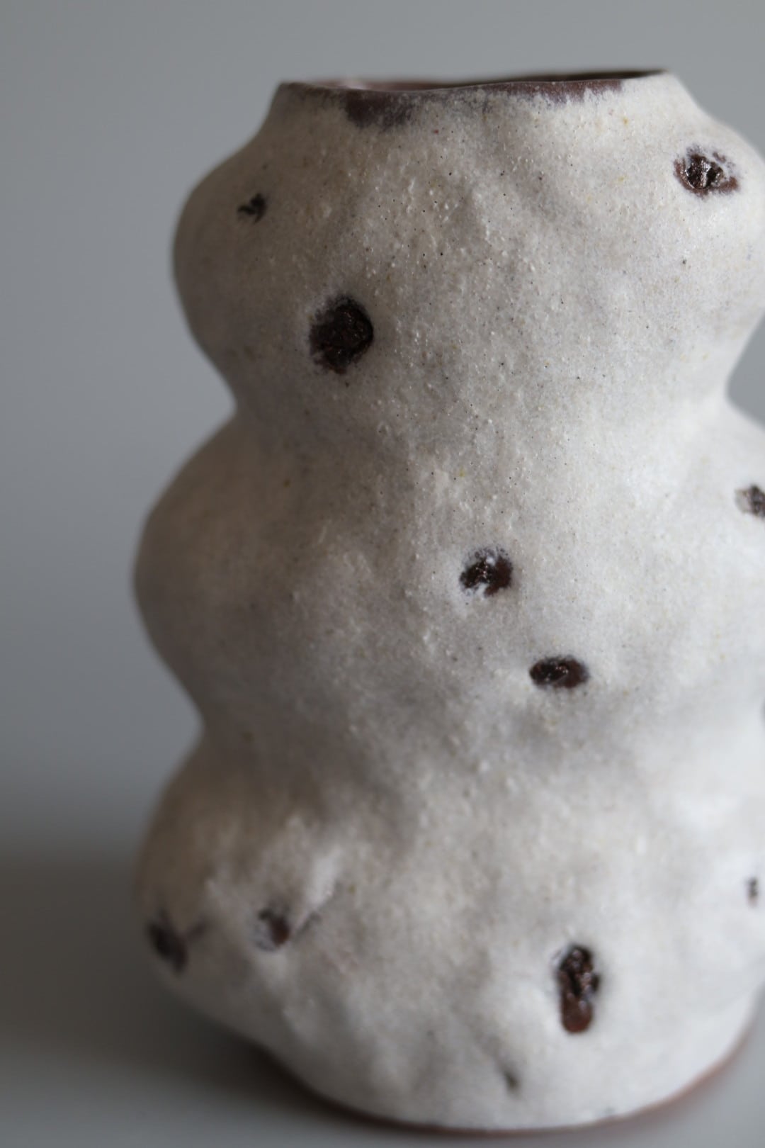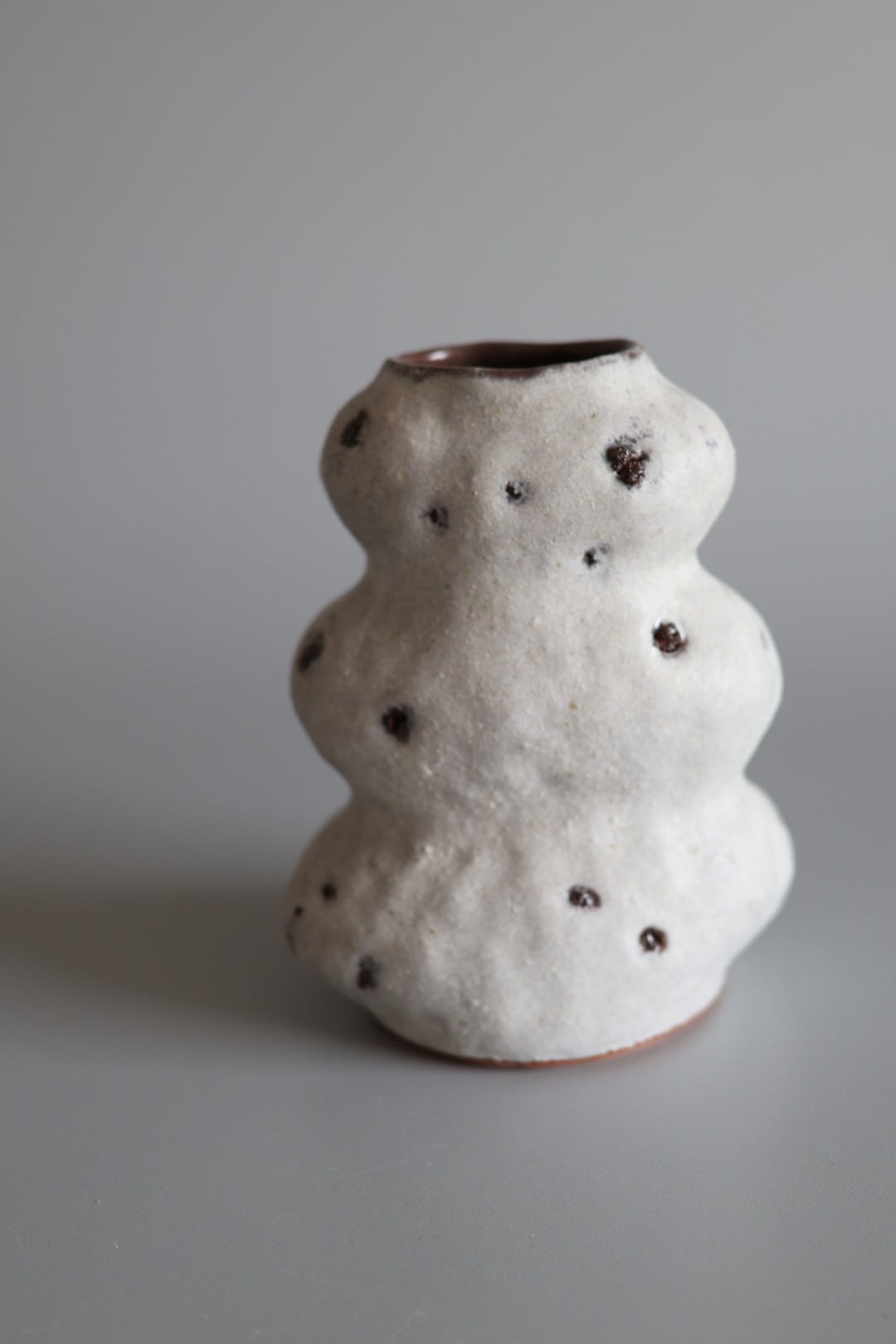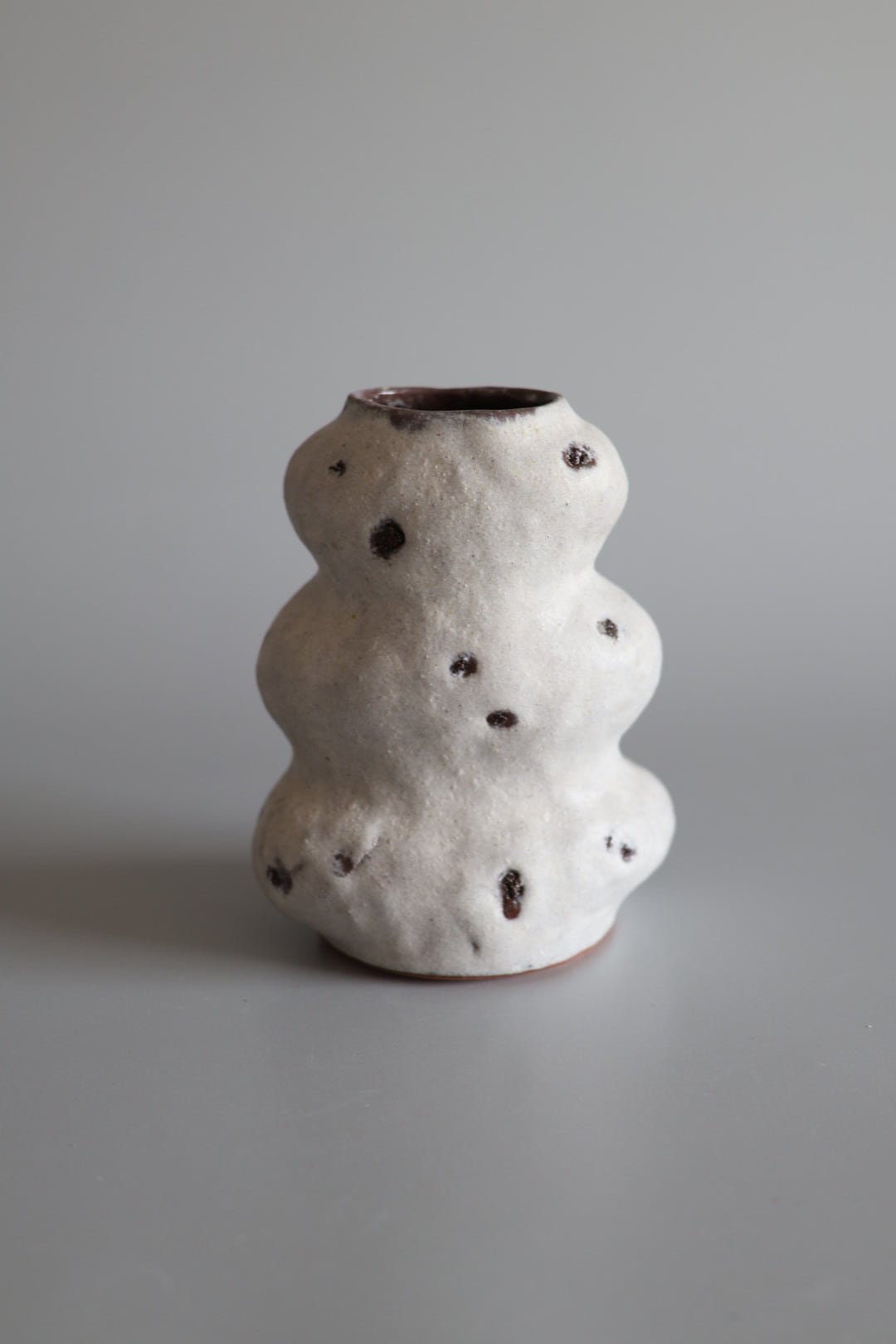 3段のモコモコっとしたデザインが印象的で生けたお花が何だか楽しそうに見えるflower vase.