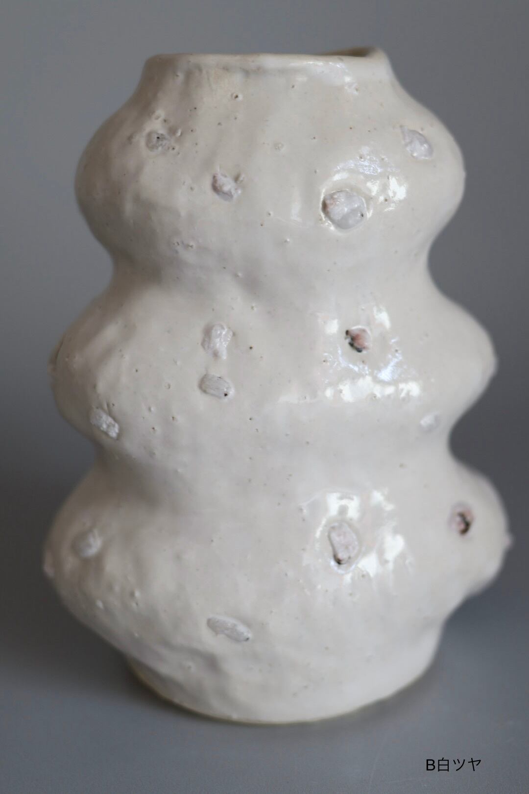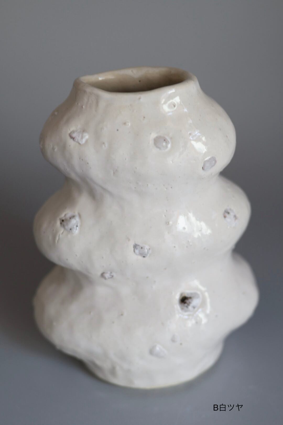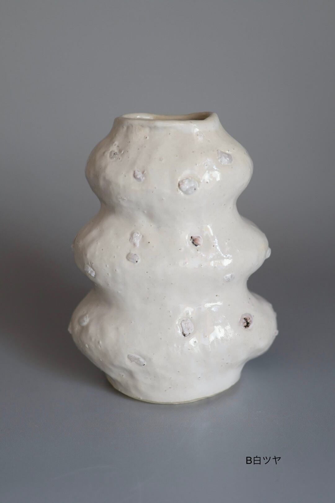 3段のモコモコっとしたデザインが印象的で生けたお花が何だか楽しそうに見えるflower vase.