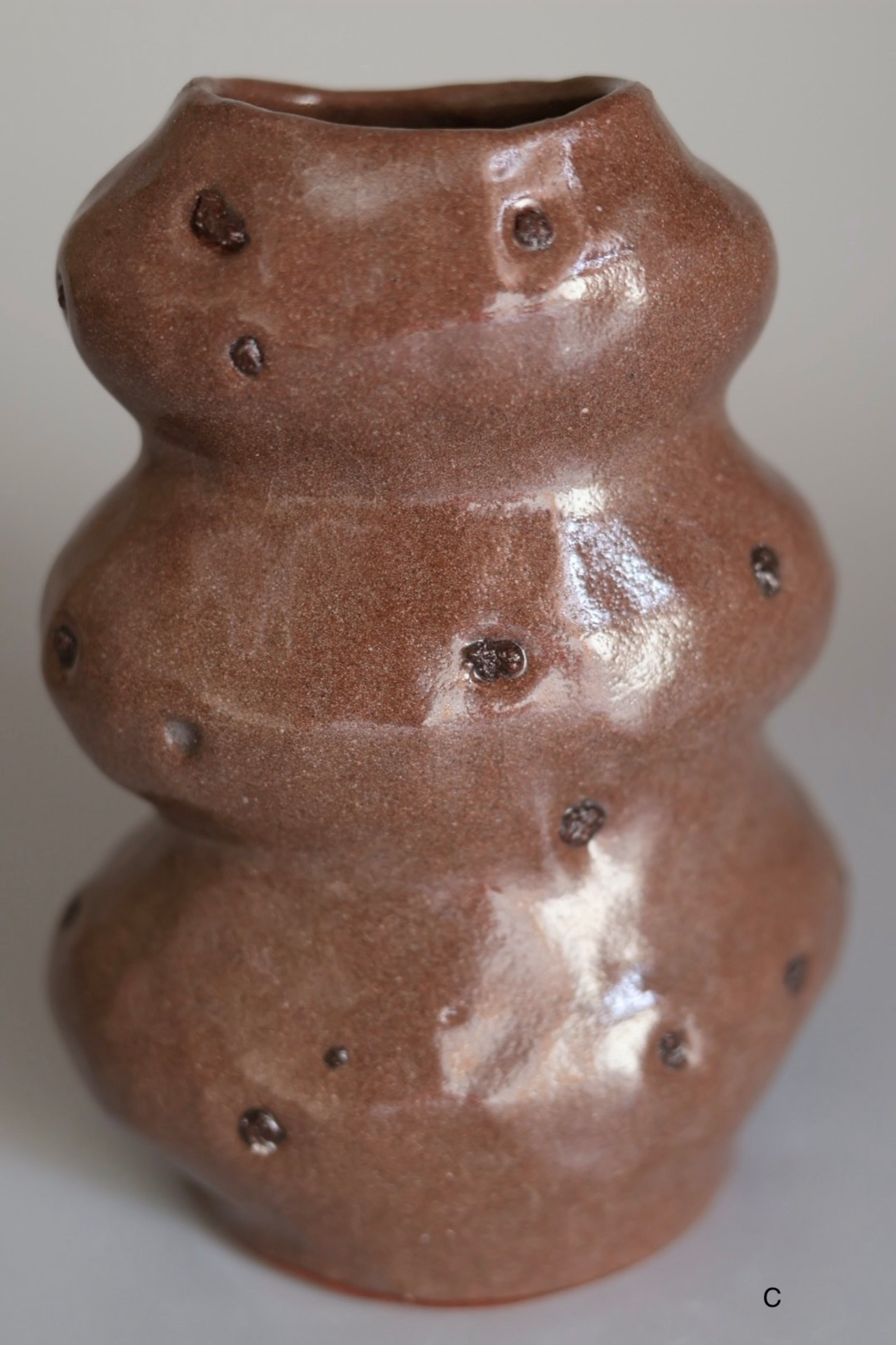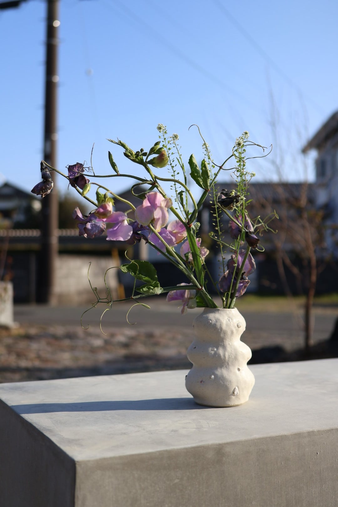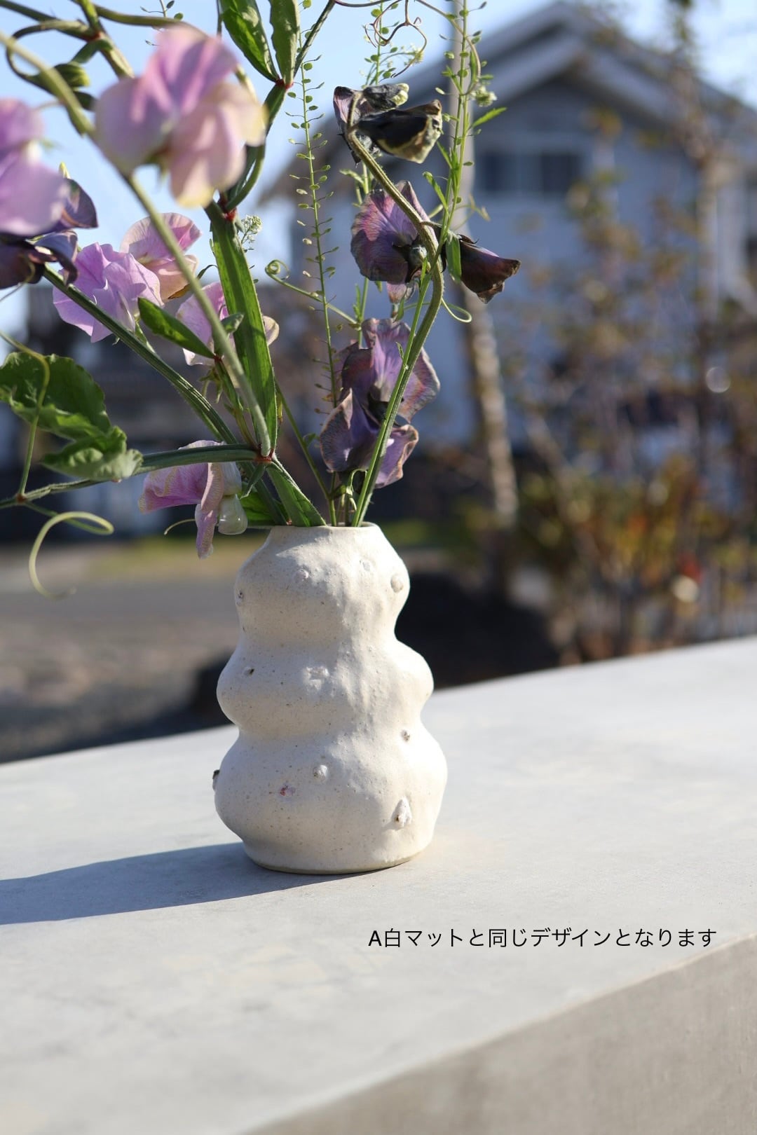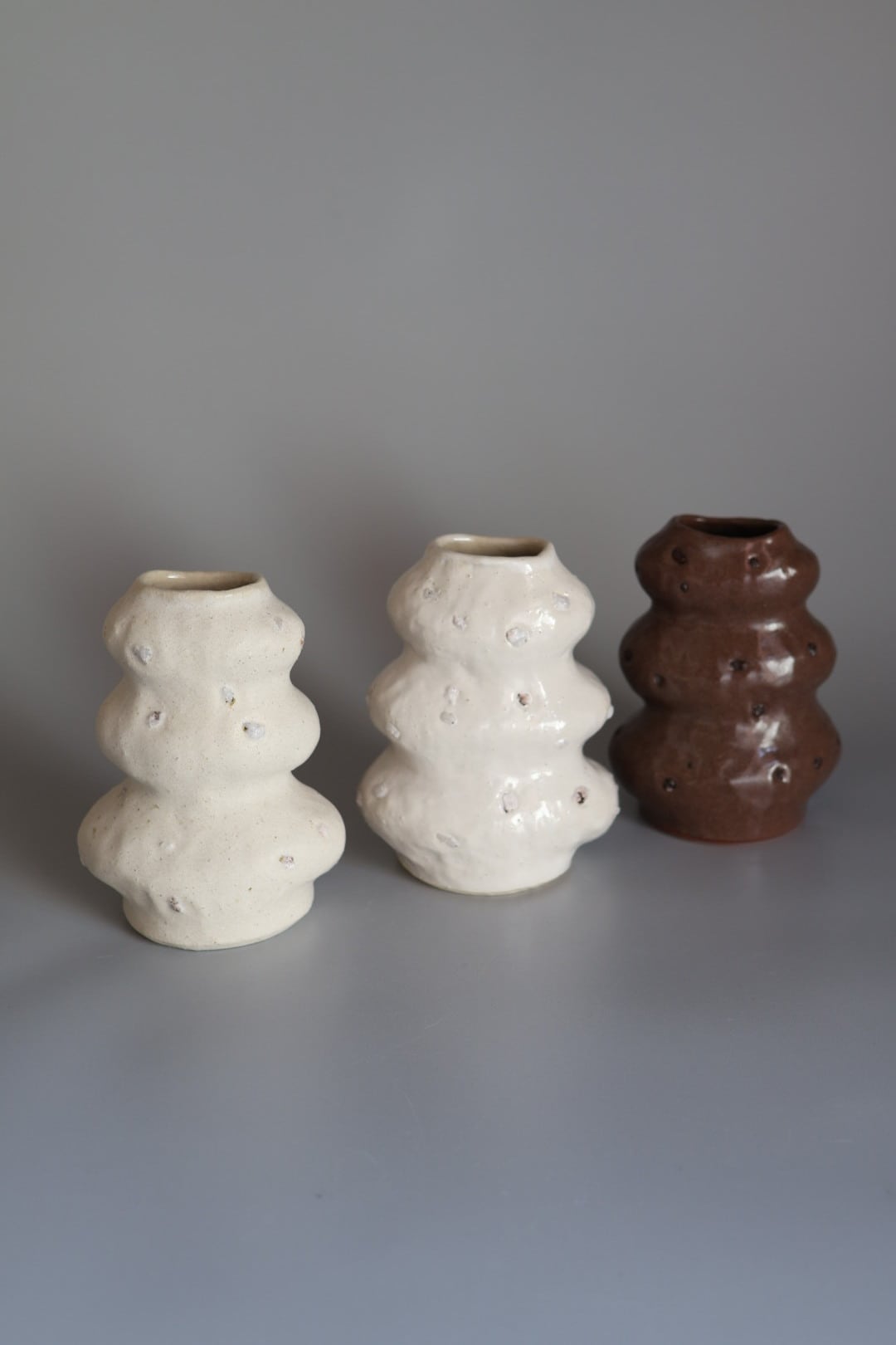 3段のモコモコっとしたデザインが印象的で生けたお花が何だか楽しそうに見えるflower vase.