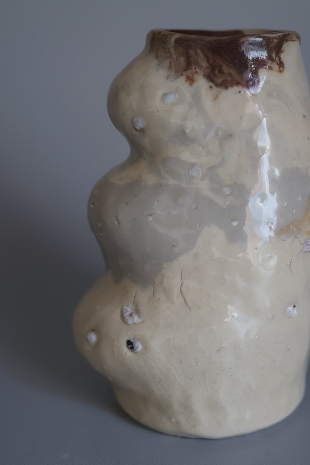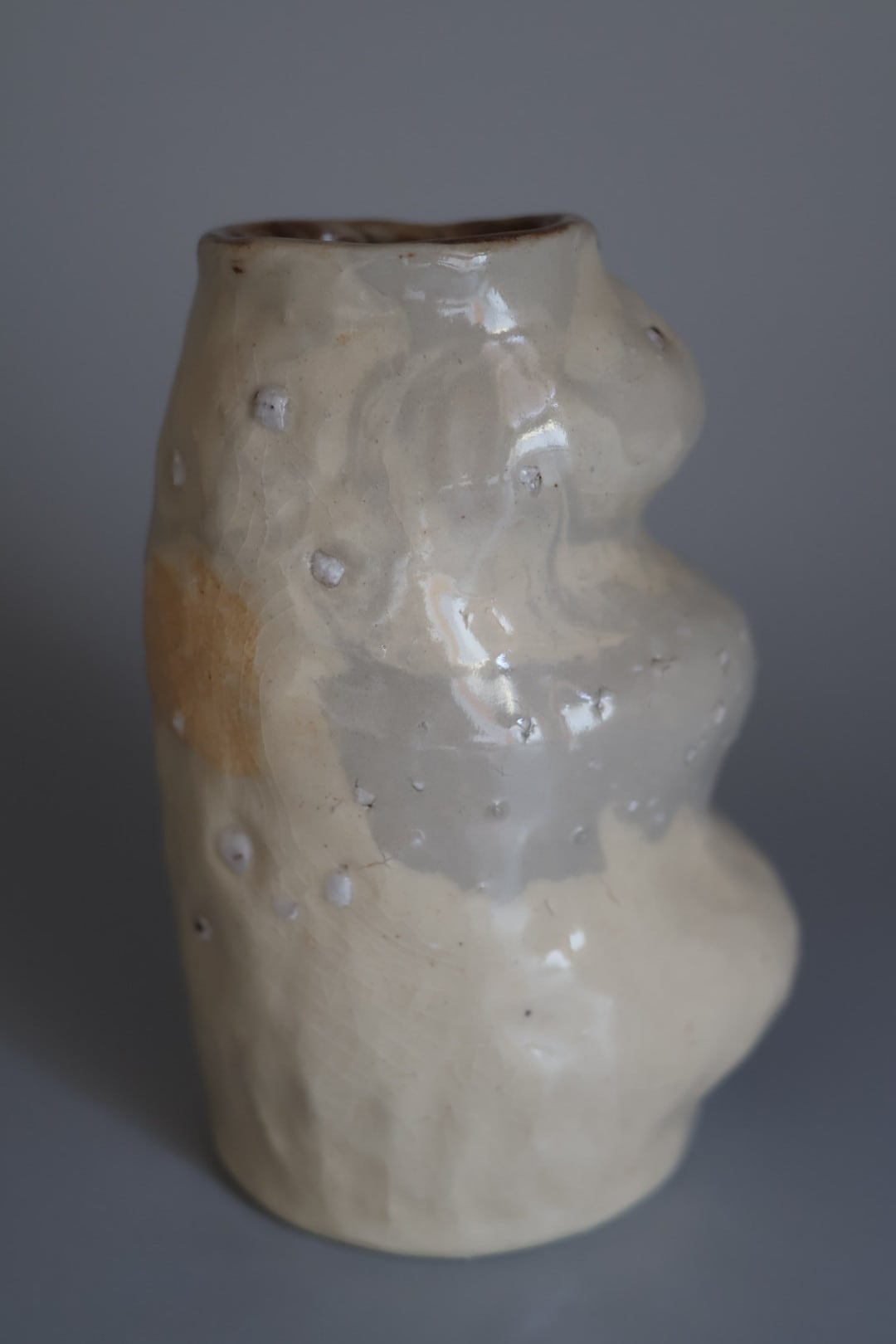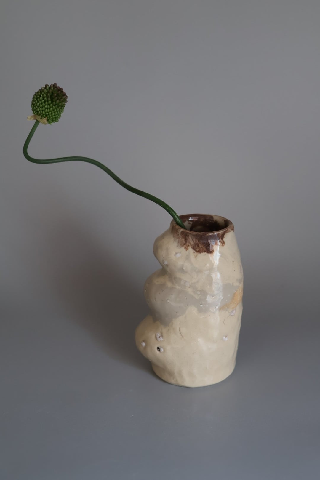 片方のみモコモコっとしたデザインが印象的な生けたお花が何だか楽しそうに見えるflower vase.
