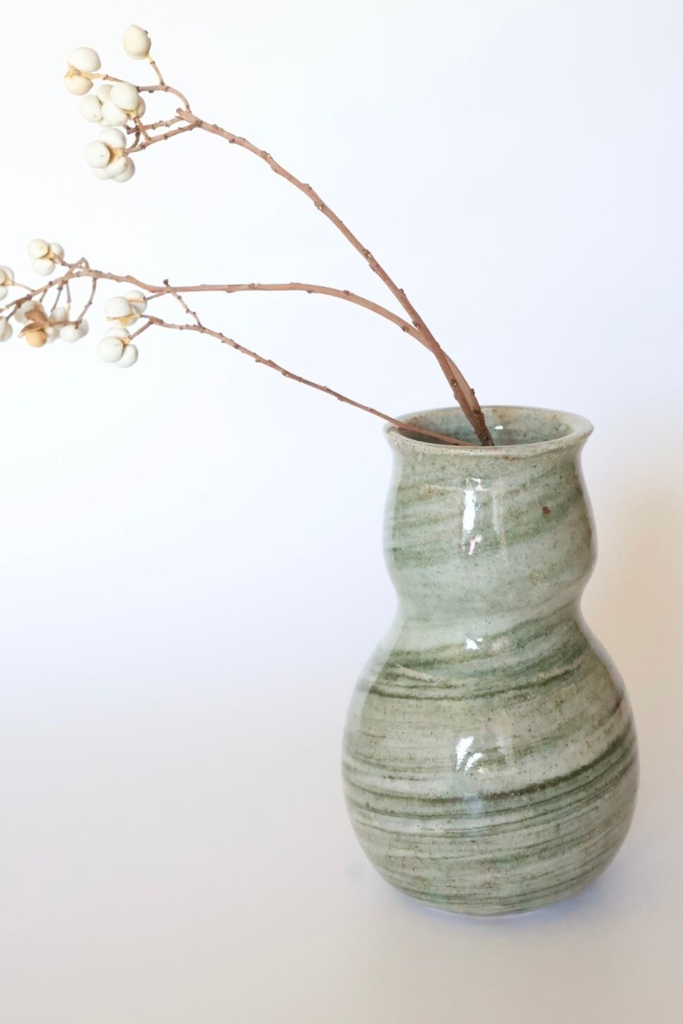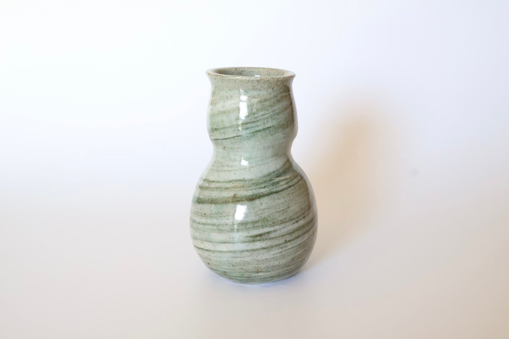 緑とベージュなどの優しさと心地よさを感じるマーブルに癒される。フォルムも柔らかくどんなお花とも相性がいいです。