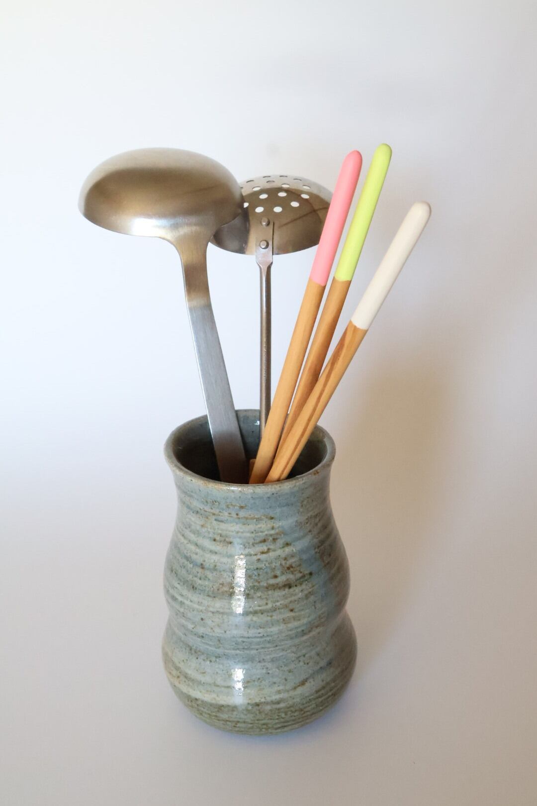 愛知県瀬戸市にて作陶されているsanako katoさんの作品です。ブルーとベージュなどの優しさと心地よさを感じるマーブルに癒される.フォルムも柔らかくどんなお花とも相性がいいです。また、キッチンツール入れとして使っても楽しめます。