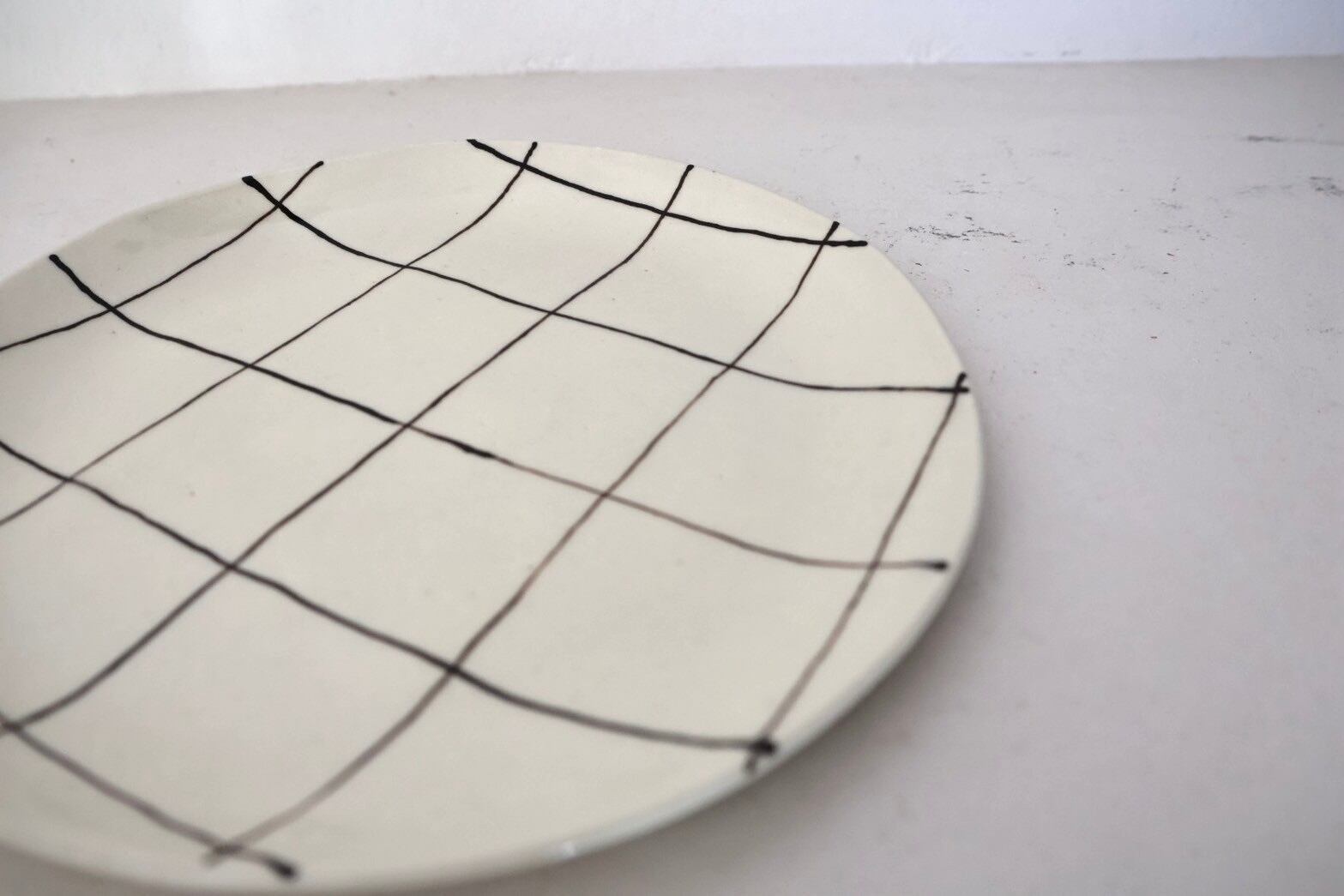 ◯一枚一枚手描きのチェック柄.遊び心が溢れた一枚だからこそ、乗せたスウィーツやお料理もなんだかルンルンしているかのように見え、使う人の気持ちを上げてくれるのです。